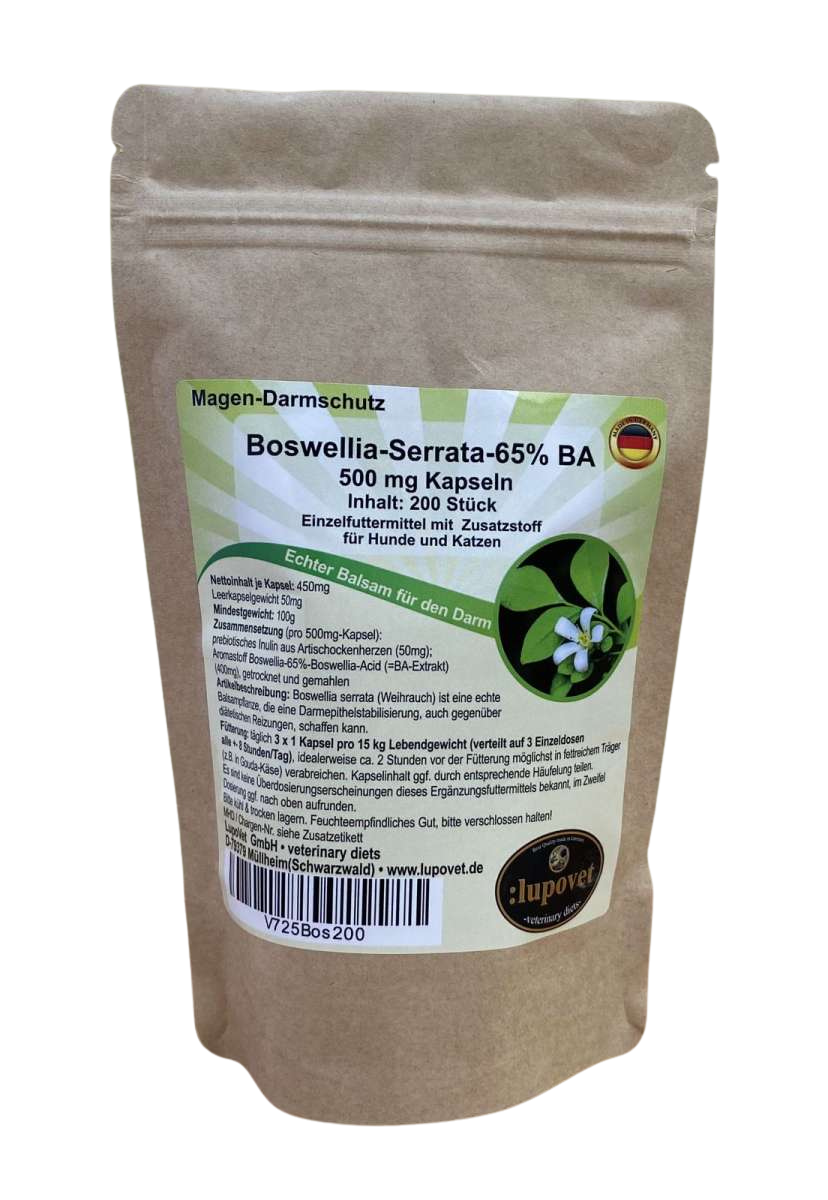 Die Kapseln bestehen zu 65% aus Boswellia-Serrata, auch bekannt als Weihrauch, eine Pflanze mit balsamischem Charakter, die dazu beitragen kann, die Darmgesundheit zu stabilisieren und diätetische Reizungen zu lindern. Darüber hinaus sind Inulin aus Artischockenherzen in unseren Kapseln enthalten, ein prebiotisches Kohlenhydrat, das die gesunden Zellen des Mikrobioms unterstützt.