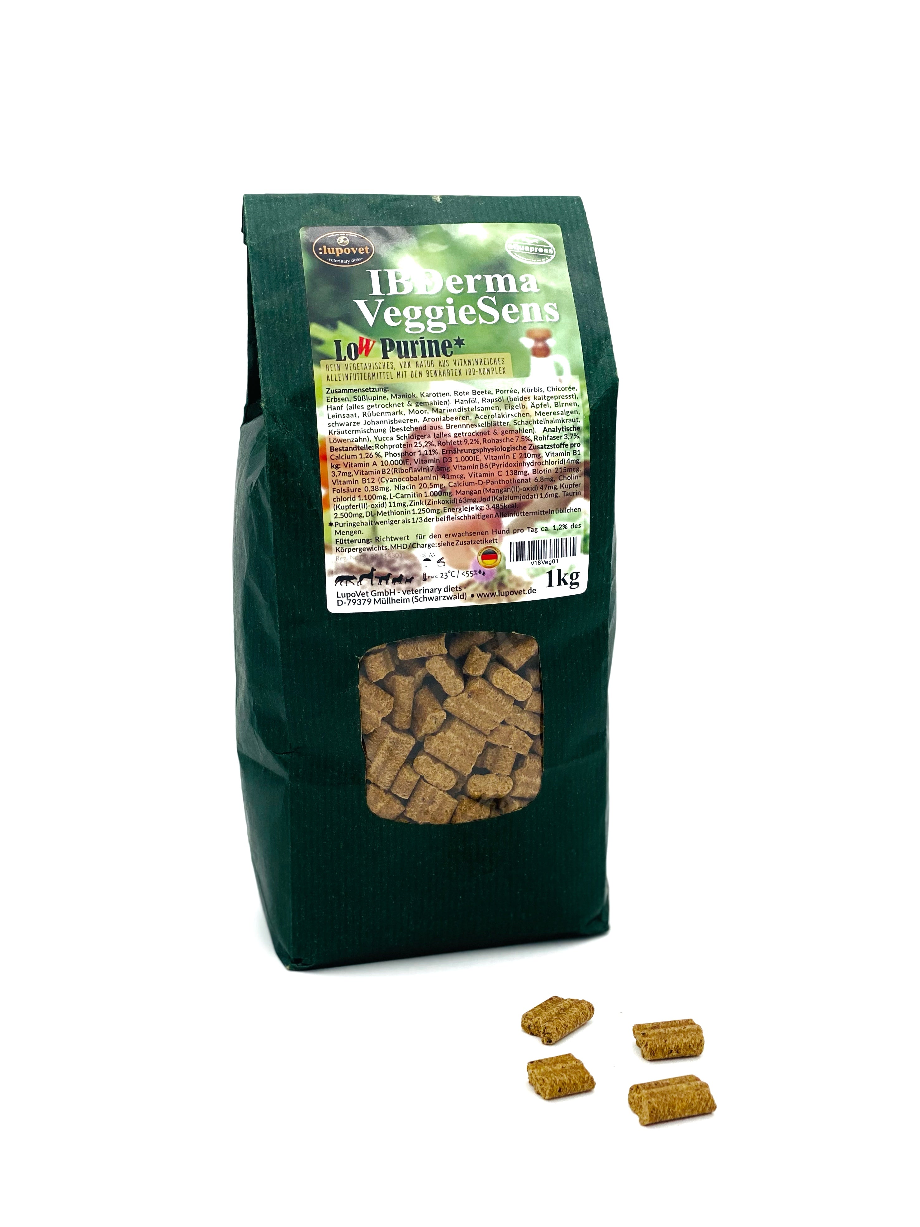 Da Allergien gegen verschiedene Fleisch und Fleischbestandteile häufig vorkommen, ist IBDerma VeggieSens die optimale Lösung für Hunde mit Futtermittelunverträglichkeiten. Durch den niedrigen Puringehalt ist es außerdem besonders bei Dalmatinern und Hunden mit Nierenproblemen empfohlen.